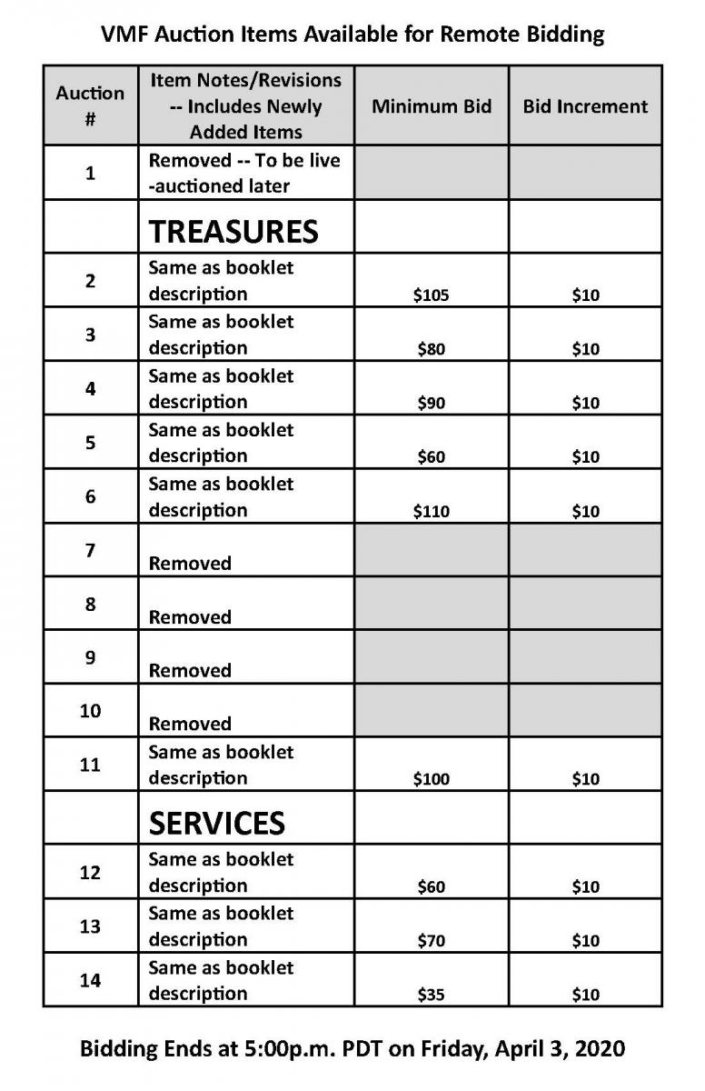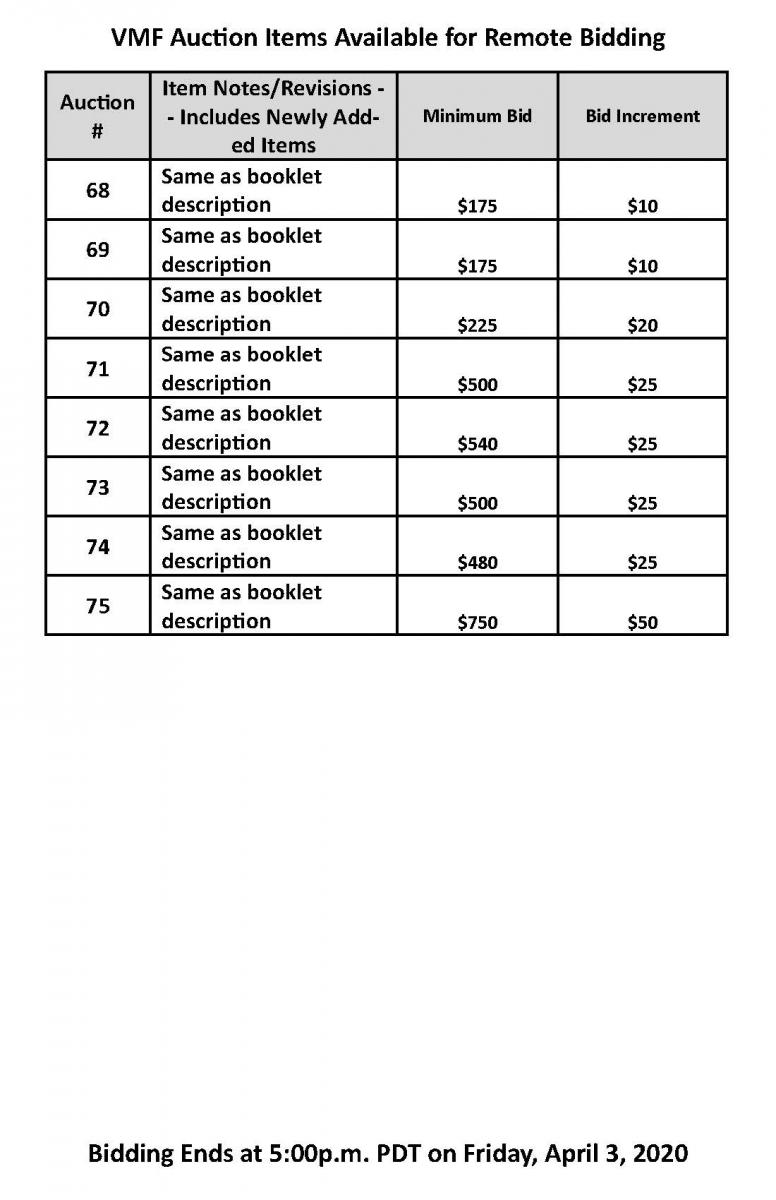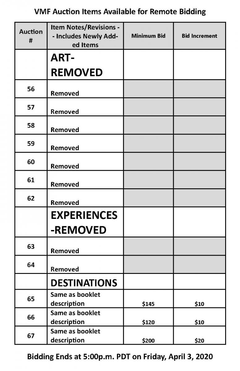 REMOTE BIDDING IS NOW OPEN FOR A REVISED VERSION OF VMF'S ANNUAL AUCTION!