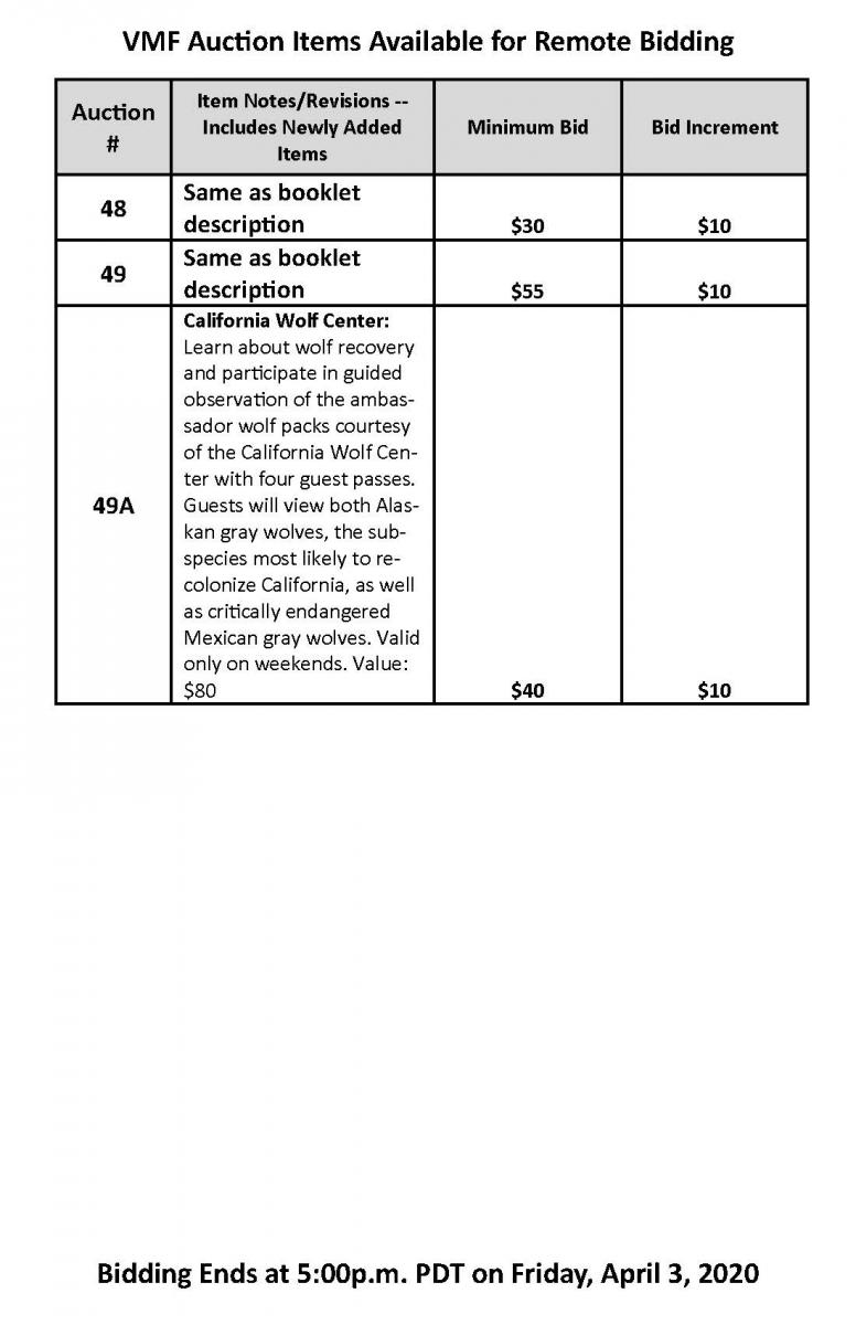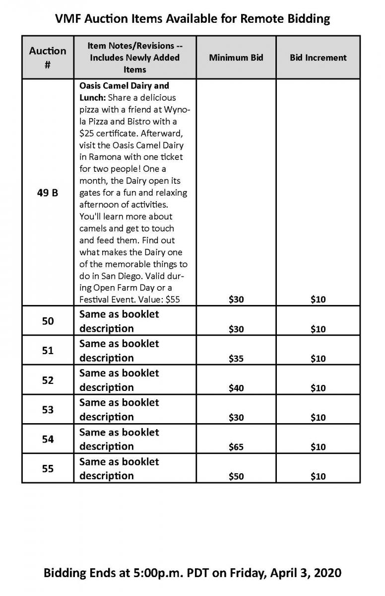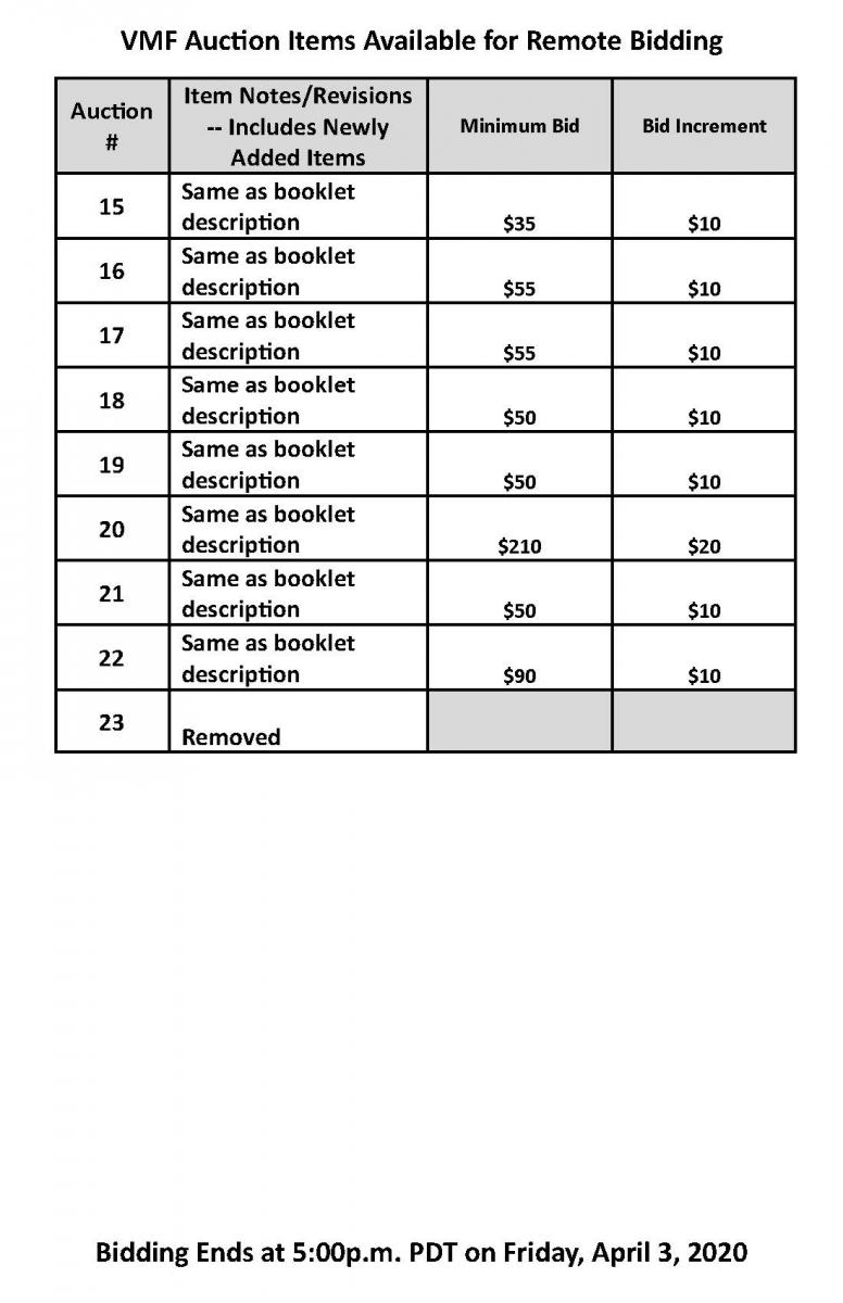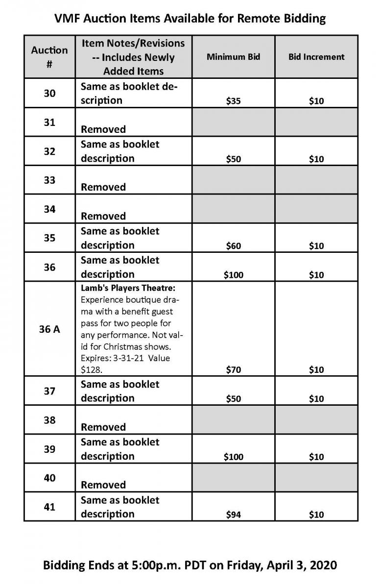 REMOTE BIDDING IS NOW OPEN FOR A REVISED VERSION OF VMF'S ANNUAL AUCTION!